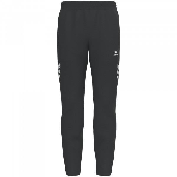 Das funktionelle Material der Trainingshose ist feuchtigkeitsregulierend, damit du dich auch bei intensiven Übungen voll und ganz auf dein Training fokussieren kannst. Dank der schmal zulaufenden Passform und dem elastischen Bund mit Kordel sitzt die Hose optimal ohne zu verrutschen. Die seitlichen Reißverschlusstaschen bieten ausreichend Platz für deine Wertsachen. Ebenfalls super praktisch ist der Reißverschluss am Beinabschluss. Stylische Akzente setzen die seitlichen Einsätze mit ERIMA Wings-Druck. Der Clou: Das weiße Modell verfügt über eine spezielle Anit-Schmutz-Ausrüstung, damit Schmutz nicht so leicht in das Gewebe eindringen kann.