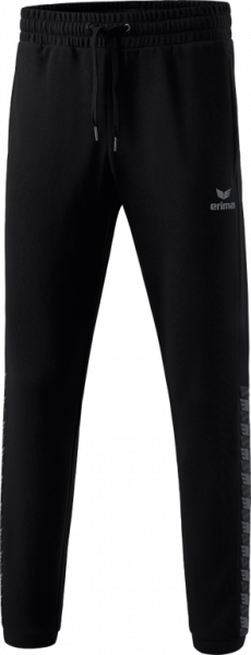 Die bequeme Sweathose ist der ideale Begleiter für Sport und Alltag. Dank dem hohen Baumwollanteil fühlt sie sich super angenehm auf der Haut an. Ein Anteil an Polyester sorgt für ausreichende Bewegungsfreiheit. Dank dem elastischen Bund mit Kordelzug und den Bündchen am Beinabschluss sitzt die Hose optimal. Ein praktisches Extra sind die seitlichen Reißverschlusstaschen, in denen wichtige Gegenstände sicher verstaut werden können. Die Sweathose kommt mit einer modernen, schmal zulaufenden Passform und einem schlichten Design. Ein optisches Highlight ist der ERIMA Schwingen-Print, der seitlich an der Wade verläuft.