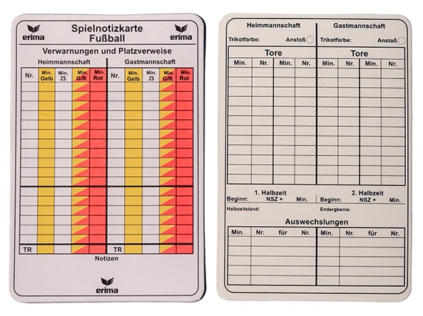 Spielnotizkarten für Fußball Schiedsrichter