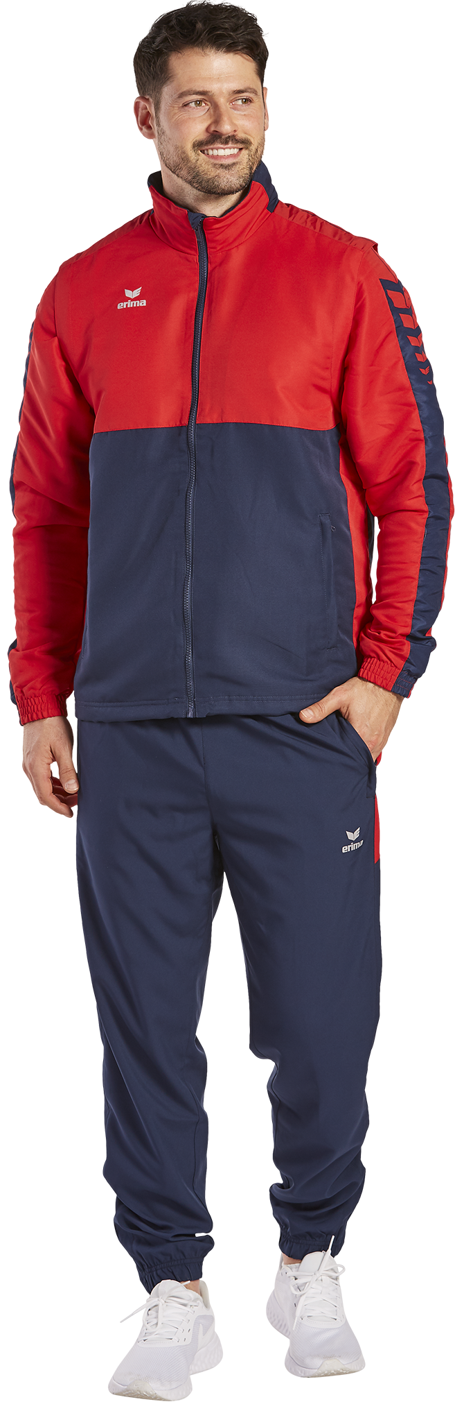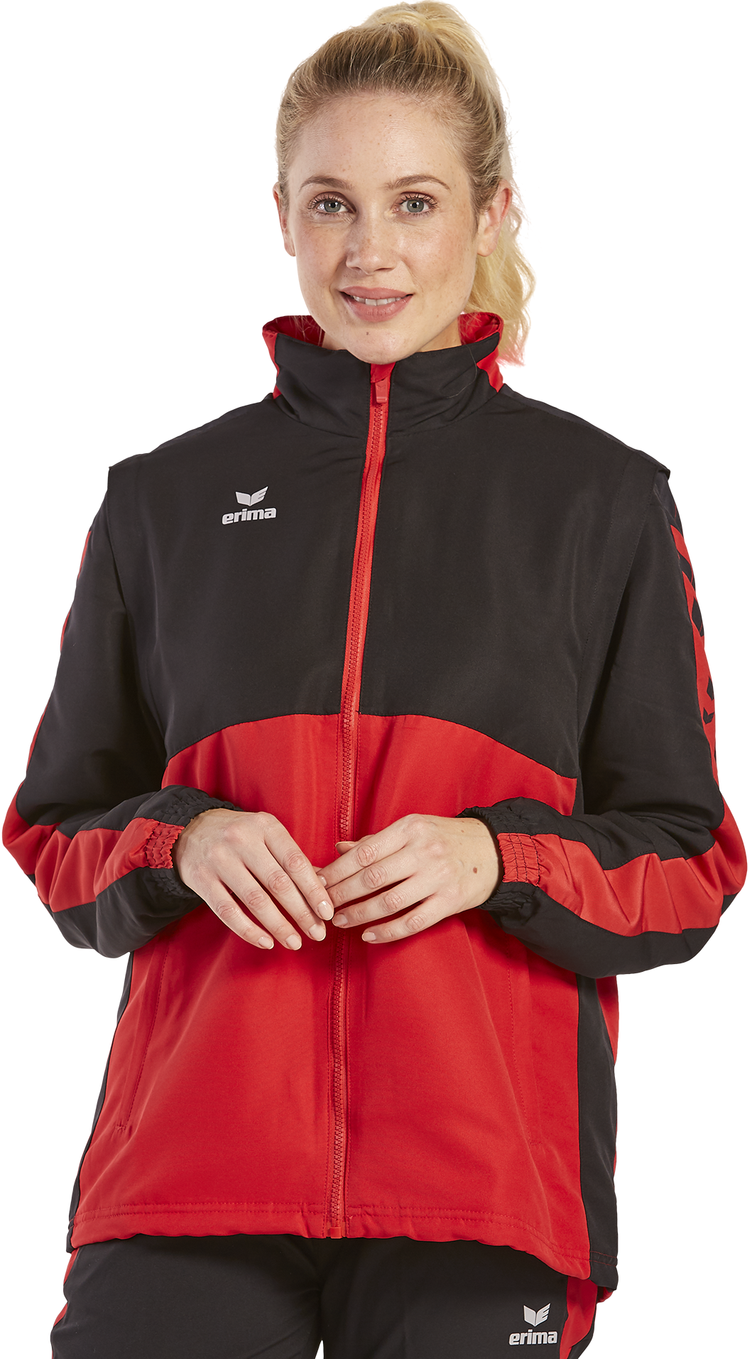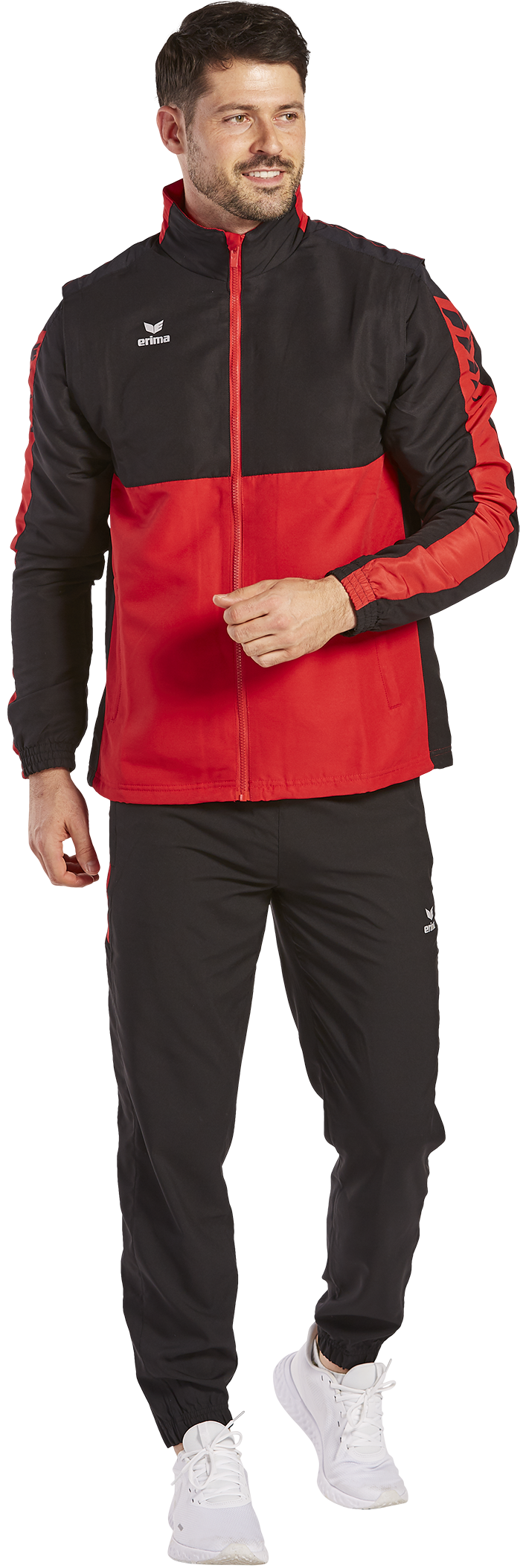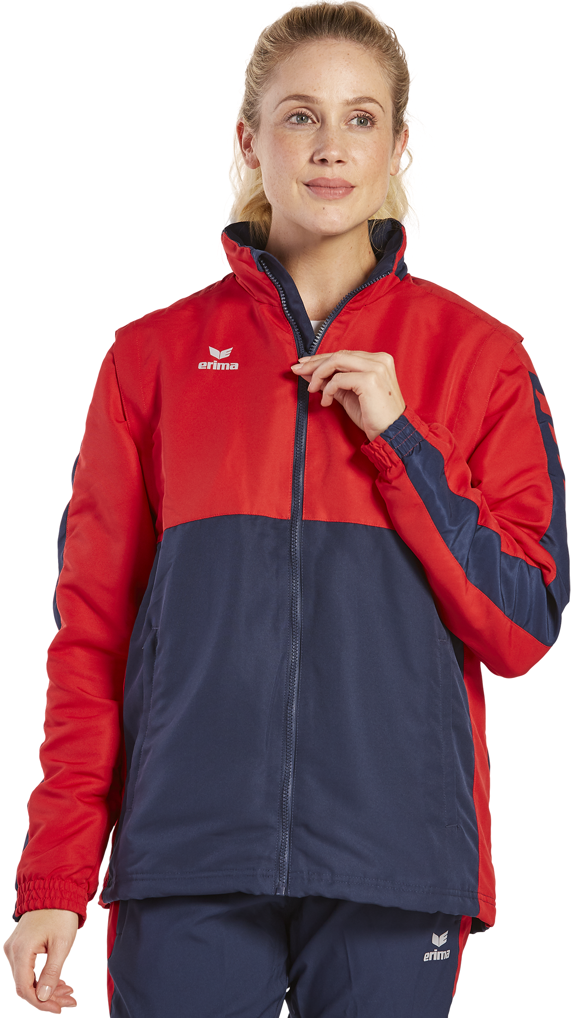 Mit der Six Wings Jacke mit abnehmbaren Ärmeln bist du bei wechselhaftem Wetter bestens ausgerüstet. Die wind- und wasserabweisende Jacke lässt sich nämlich auch als Weste tragen. Die Ärmel kannst du ganz einfach mit einem Reißverschluss abmachen. Bei schlechtem Wetter schützen dich das Innenfutter aus Fleece und die im Kragen integrierte Kapuze optimal vor Kälte und Niederschlag. Damit keine Kälte eindringen kann, verfügt die Jacke über Bündchen an den Ärmeln sowie einem Kordelzug am Saumabschluss. Abgerundet wird die Jacke mit ihrem stylischen ERIMA Schwingen-Design auf den Schultern und dem modernen, zweifarbigen Look.